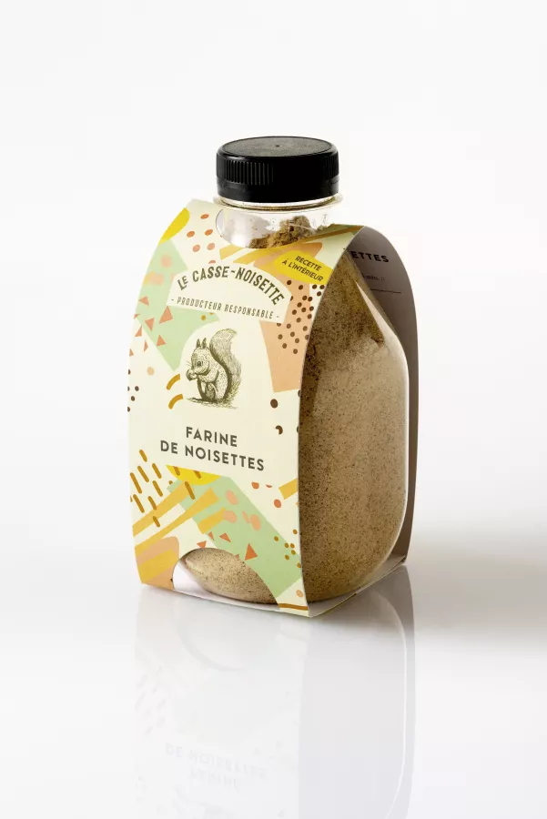 Farine de noisettes, extraite du fruit du noisetier, obtenue à partir du tourteau de noisette après récupération de l'huile.