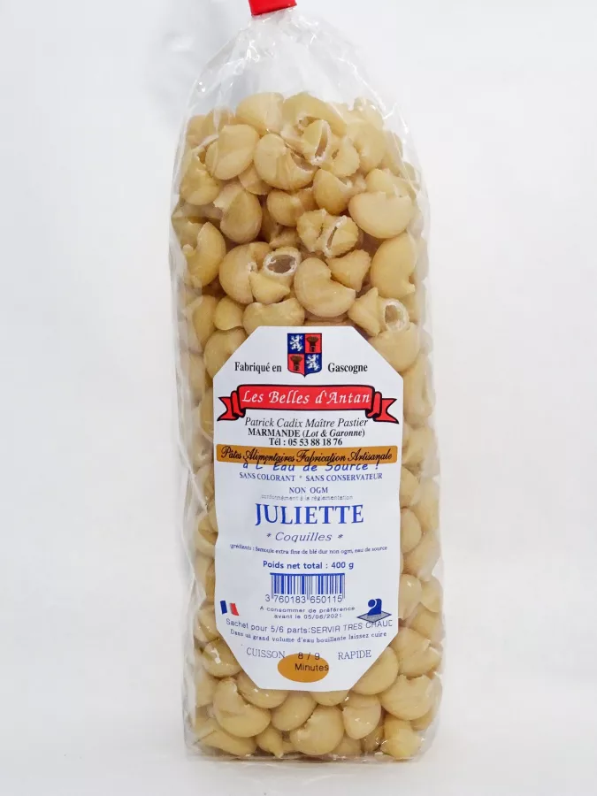 Pâtes artisanales Juliette, coquilles, sans additif, sans sel, sans colorant